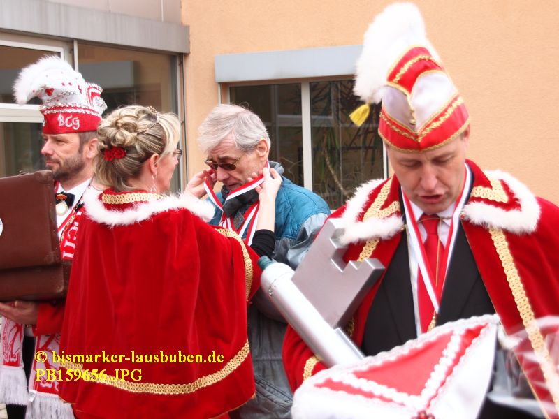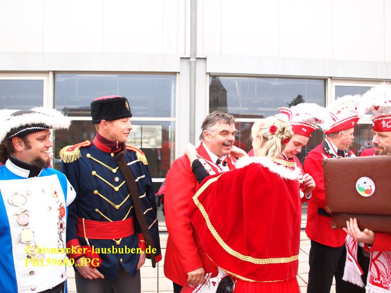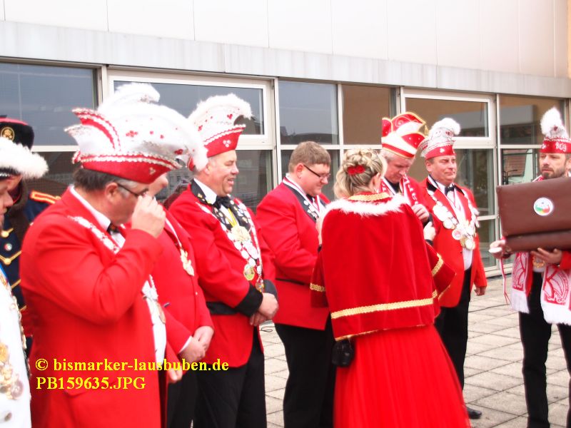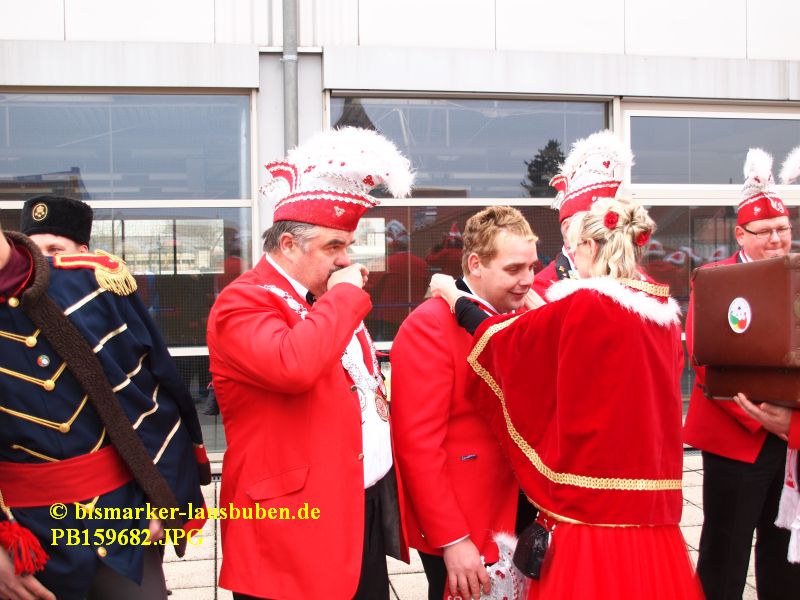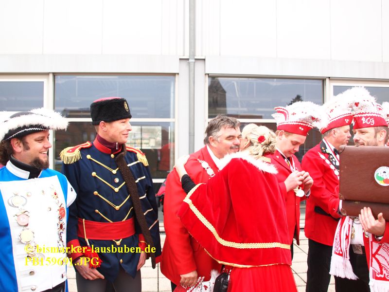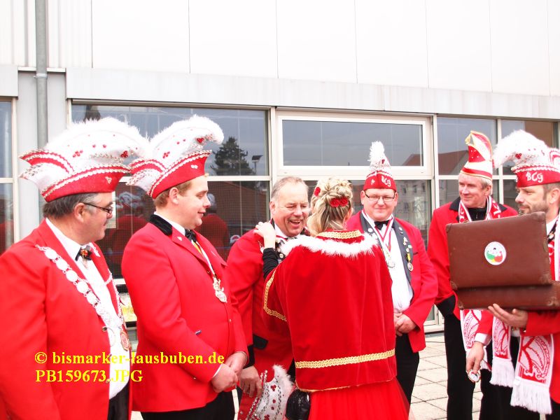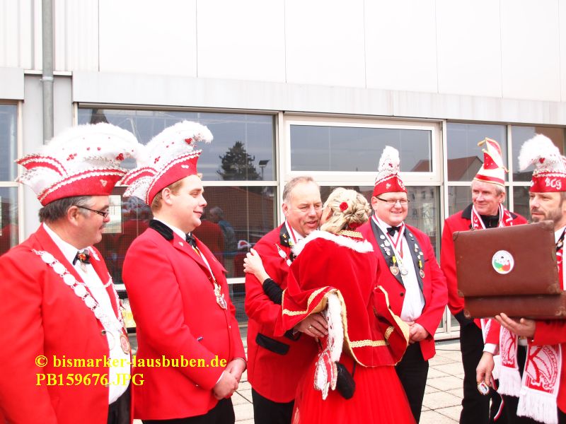 Der farbenfrohe Umzug durch Bismark hat zur Schlüsselübergabe an der Mehrzweckhalle einen Stopp eingelegt. Im Anschluss führte der Weg zum Tivoli. Nach dem Einzug in den Saal eröffneten die neuen Prinzenpaare den Tanz und es wurden einige Programmpunkte der letzten Session aufgeführt.